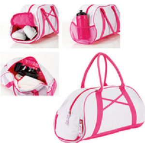 Em Poliéster. Com divisão para levar os sapatos, compartimento em PVC, com vários bolsos e um porta-chaves destacável. Dimensões: 50 x 20 x 23 cm aprox.